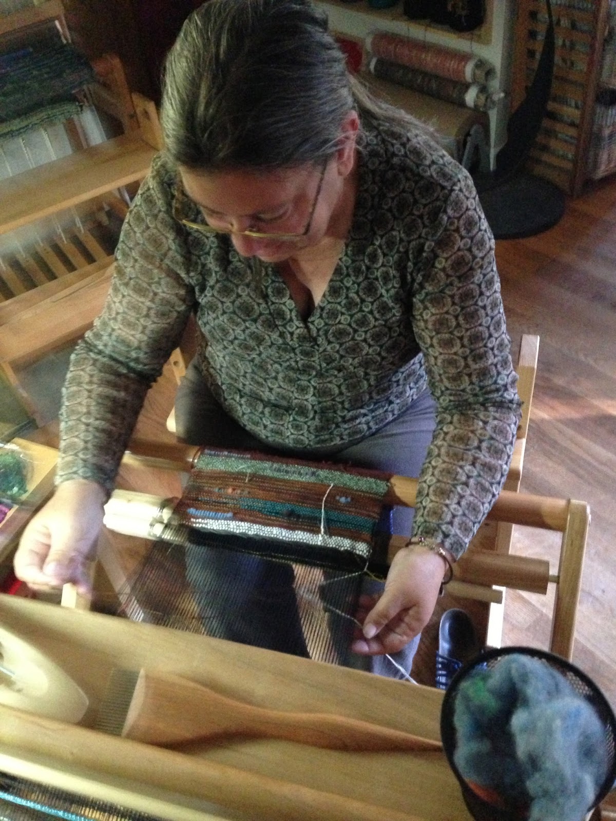 Such a very pleasent person, and a lovely first ever weaving piece and a new skill to contemplate adding to her extensive fiber knowledge.