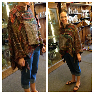 My knitting group met and I asked some of them if they wanted to try on some my saori pieces I have made , so we had a little fashion show at the our local coffee shop