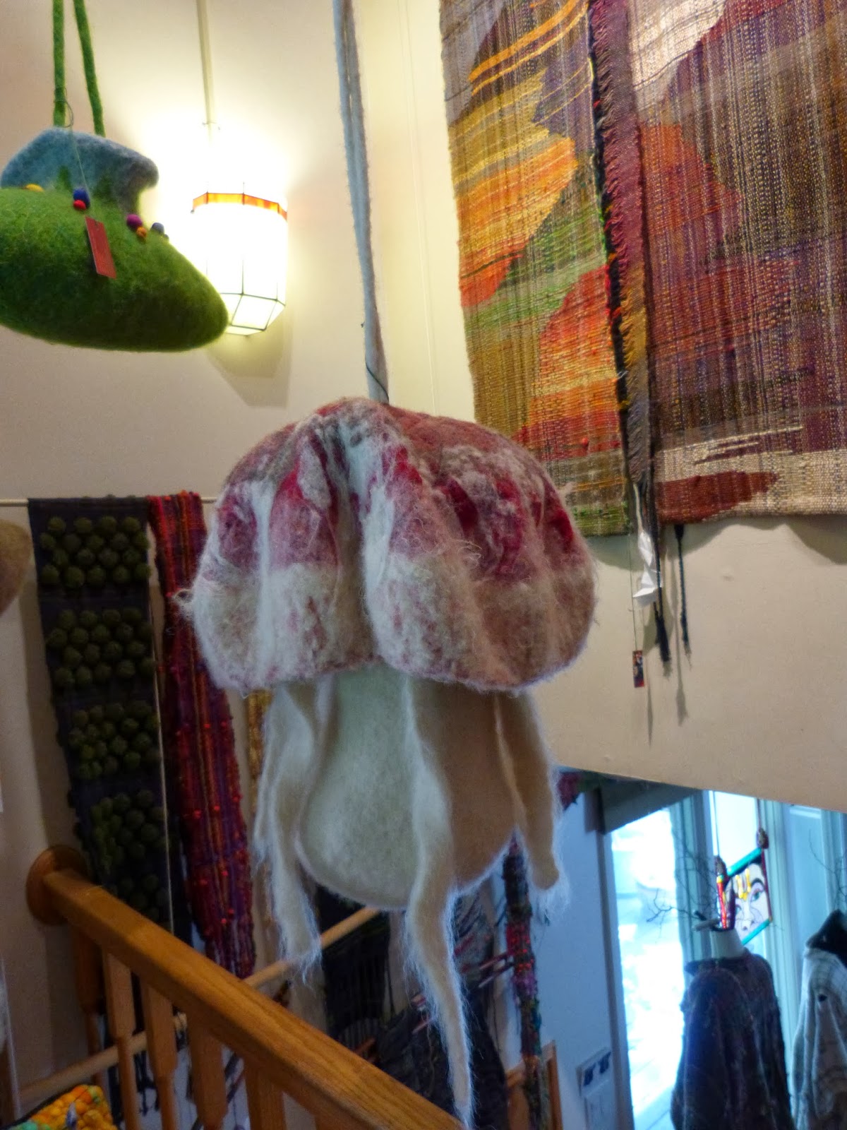 Fun trying on my Saori woven pieces was very active today. This is the "amethyst sleeved and pocketed ruanna/shawl"this is an unusual piece because it is wool and mohair, with mostly hand spun weft yarns.
