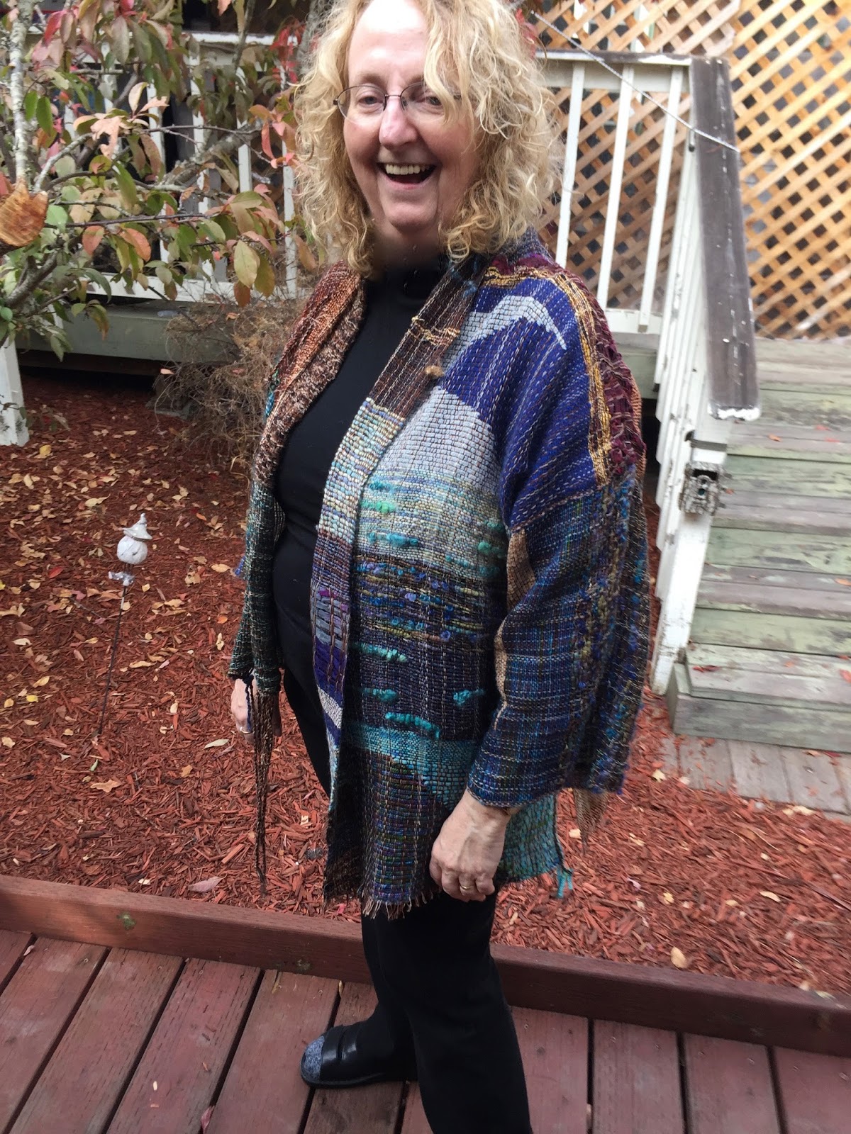 This is her 8 1/2 yards of wool warp and weft yardage ( we wound the warp last she came ) For Saori Classes here or get custom classes email me