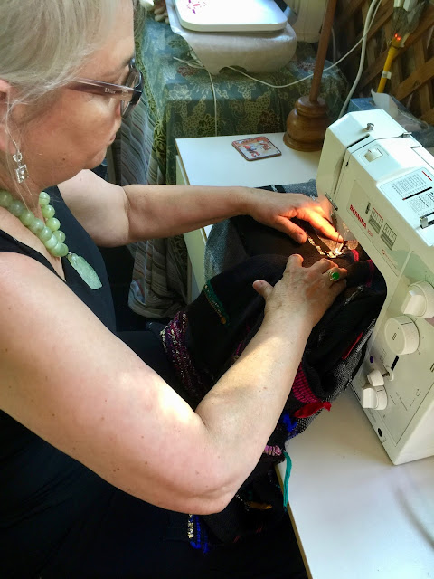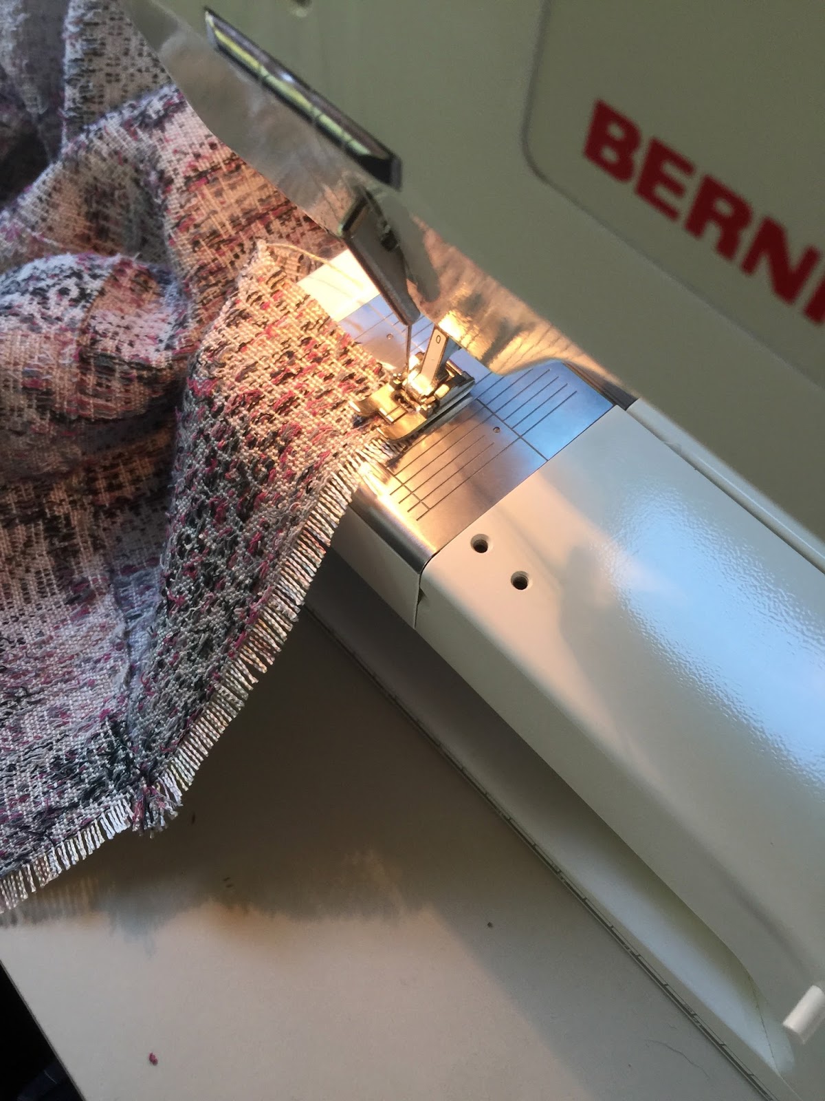 First garment we decided to sew is a beautiful overshot silk warp weaving Denise calls " old love letters"