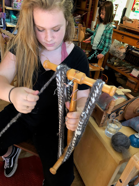 Zoey plied and then I showed her how to niddy noddy the yarn off the bobbin