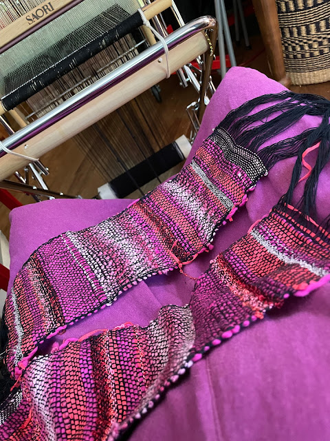 Marcia came to thread her saori ready made warp