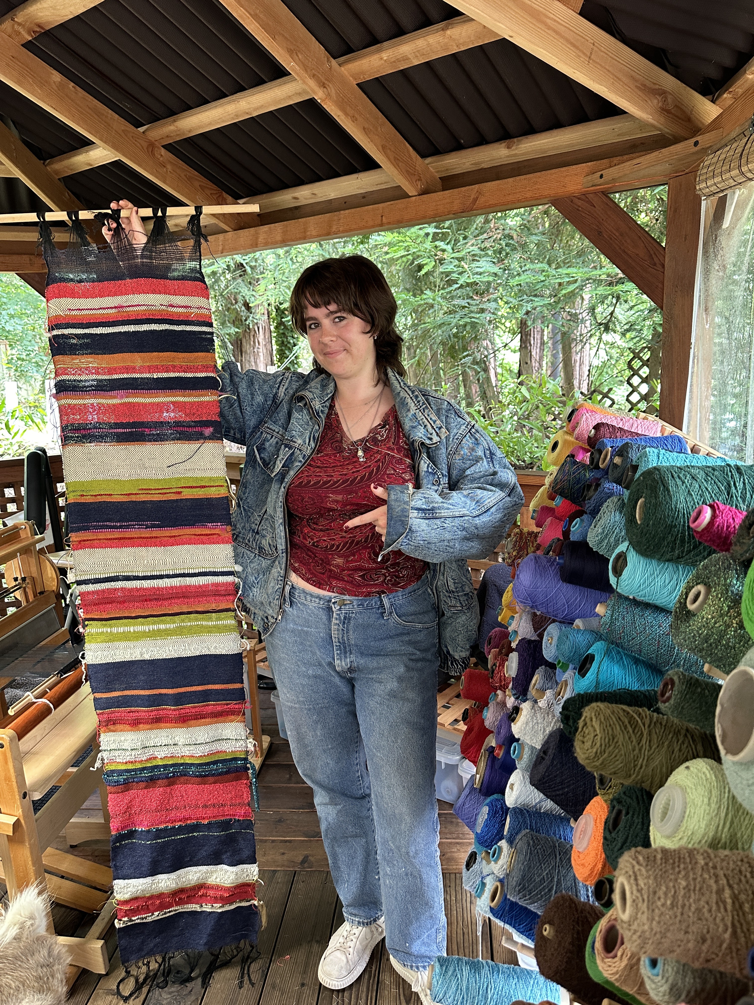 Meet Sheila she brought her niece for a shared birthday experience saori weave . Look what they created in a 4 hour class!